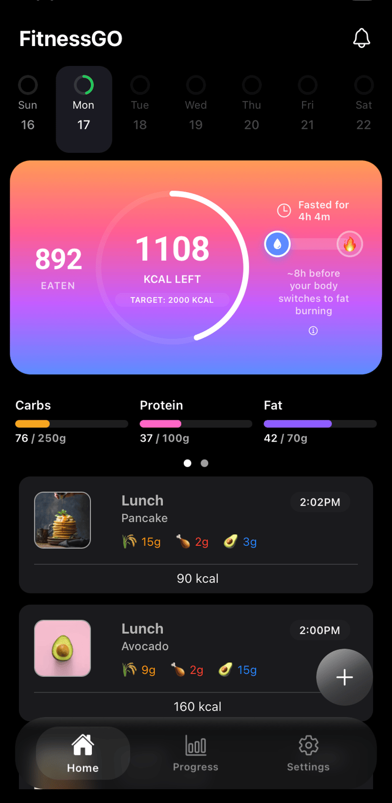 Fast whenever you want and let FitnessGO keep track for you automatically.